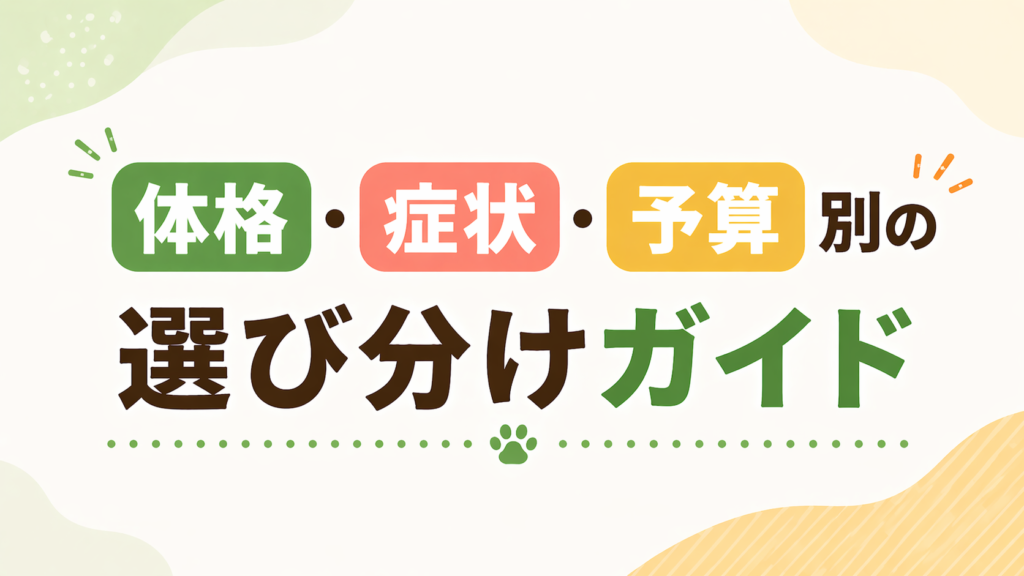 選択のポイントは、ペットの性格・体格と飼い主のニーズのマッチングです。