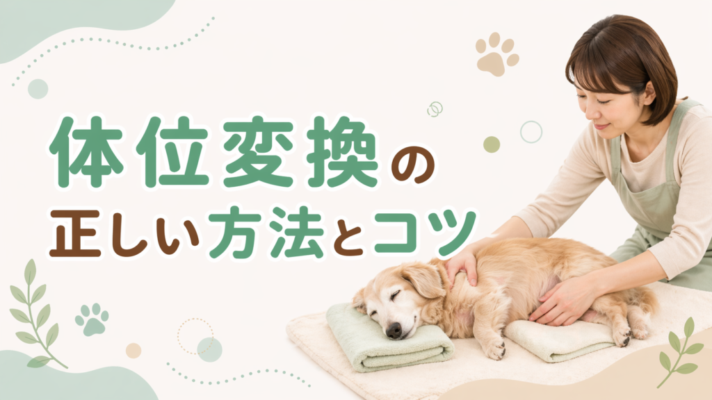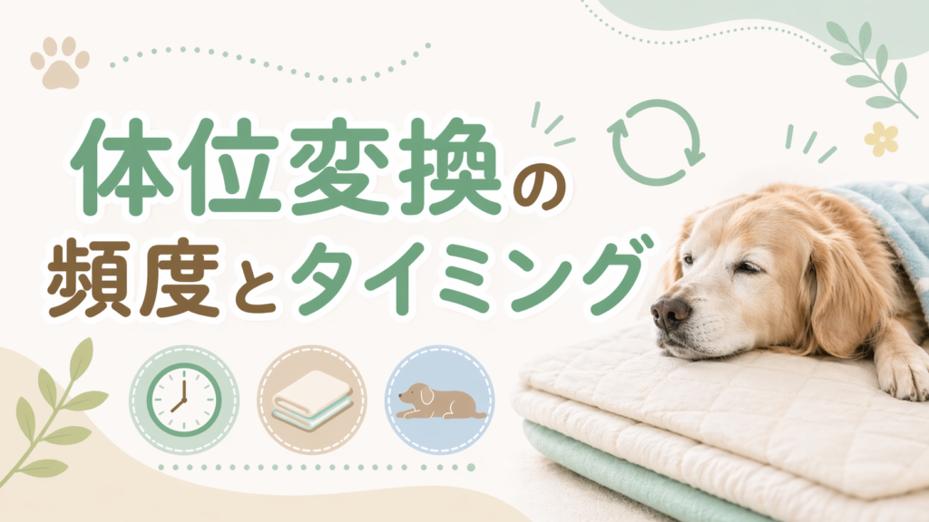 体位変換は、同じ場所に負担がかかり続けないようにするために行います。アニコムの解説では、理想的には2〜3時間おきに寝返りをさせることが望ましいとされています。
