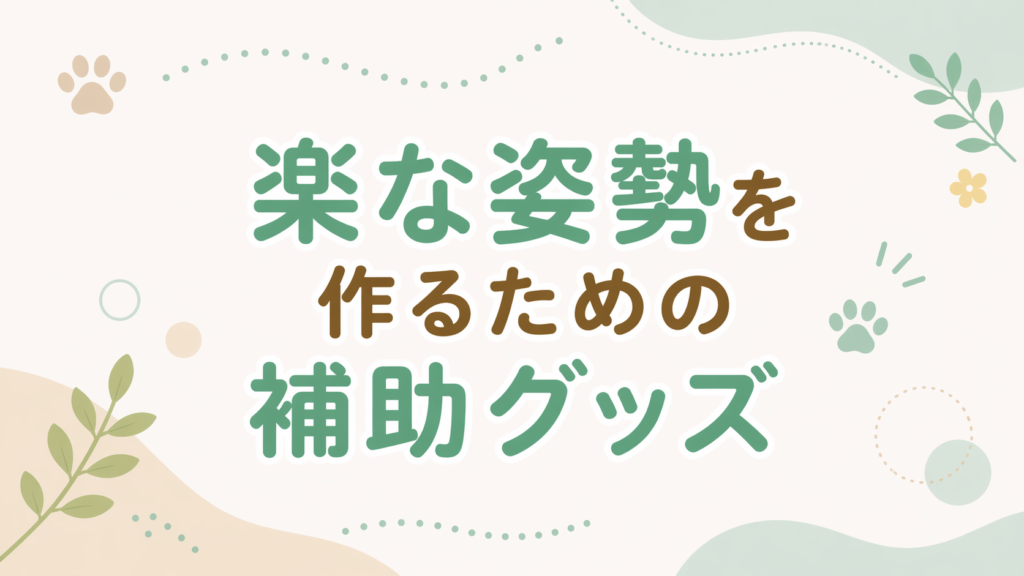 横向きだけでは落ち着きにくい場合は、クッションや畳んだタオルで少し角度をつけて、過ごしやすい姿勢を探す方法があります。アニコムの解説でも、どうぶつによって心地よい姿勢が異なり、クッションで工夫することが勧められています。